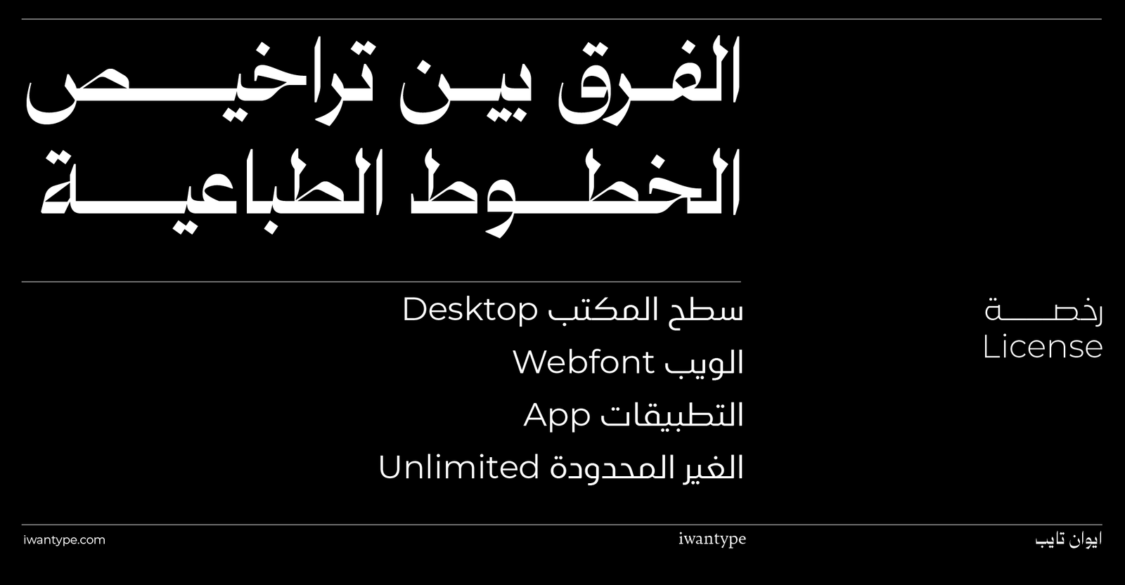 الرخص المختلفة توفر حلولًا تتناسب مع احتياجات المستخدمين المختلفة، ومن المهم قراءة شروط الرخصة بعناية قبل اتخاذ القرار. لضمان استخدامك للخط بشكل قانوني وفعال، تواصل معنا عبر موقعنا iwantype.com لمزيد من المشورة والمساعدة في اختيار الرخصة التي تناسب مشروعك بشكل مثالي. نحن هنا لدعمك في كل خطوة من خطوات تصميمك.