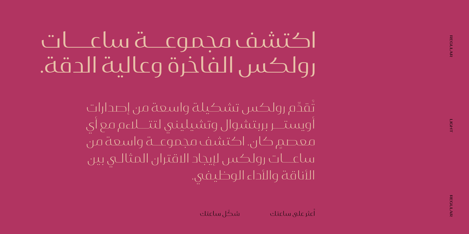 Layla Arabic typeface is a modern Arabic typeface designed by Ahmed Zaza. the design is inspired by the Kufi calligraphic style and influenced by the Naskh style. The result is a hybrid that combines modern proportions with Classic Arabic scriptsit’s suitable for branding, editorial, packaging, and advertising.Layla pro Arabic Features five weights from Light to Bold