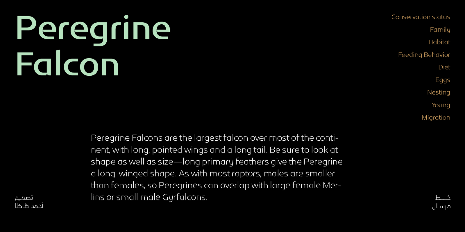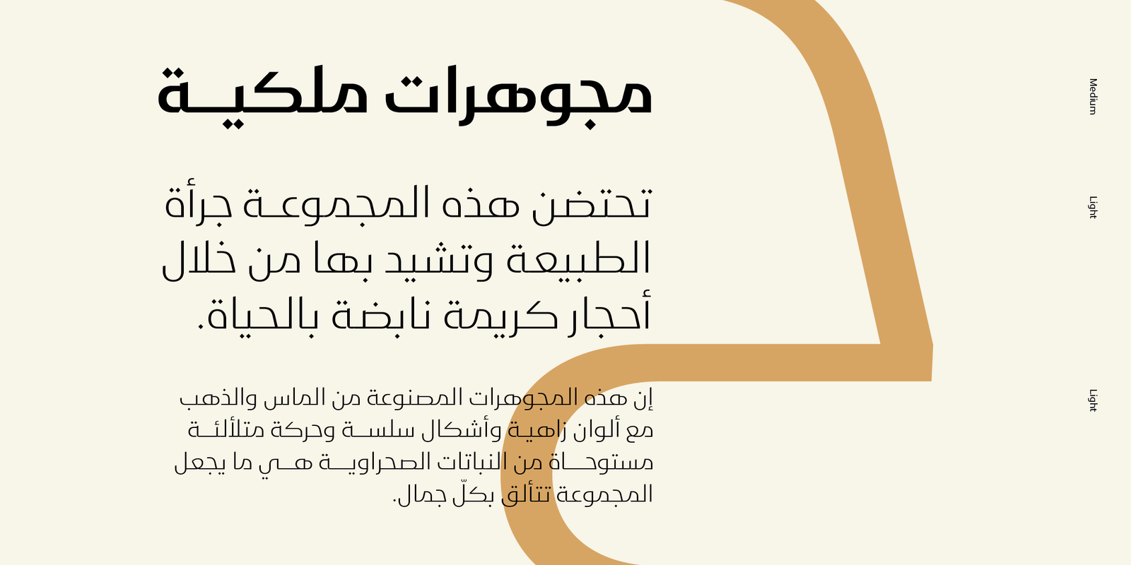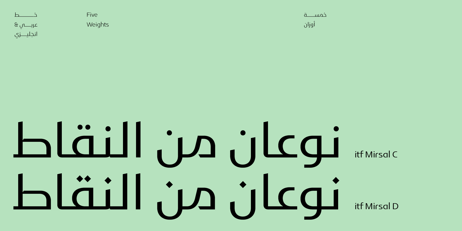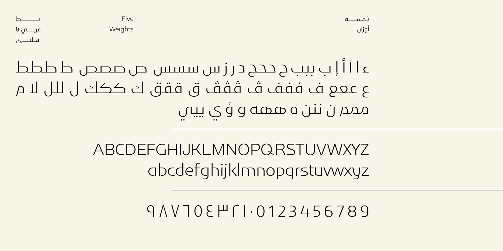 Mirsal Arabic typeface is a modern Arabic typeface designed by Ahmed Zaza. the design is inspired by the Kufi calligraphic style and influenced by the Naskh style. The result is a hybrid that combines modern proportions with Classic Arabic scriptsit’s suitable for branding, editorial, packaging, and advertising.Mirsal Arabic Features five weights from Light to Black.