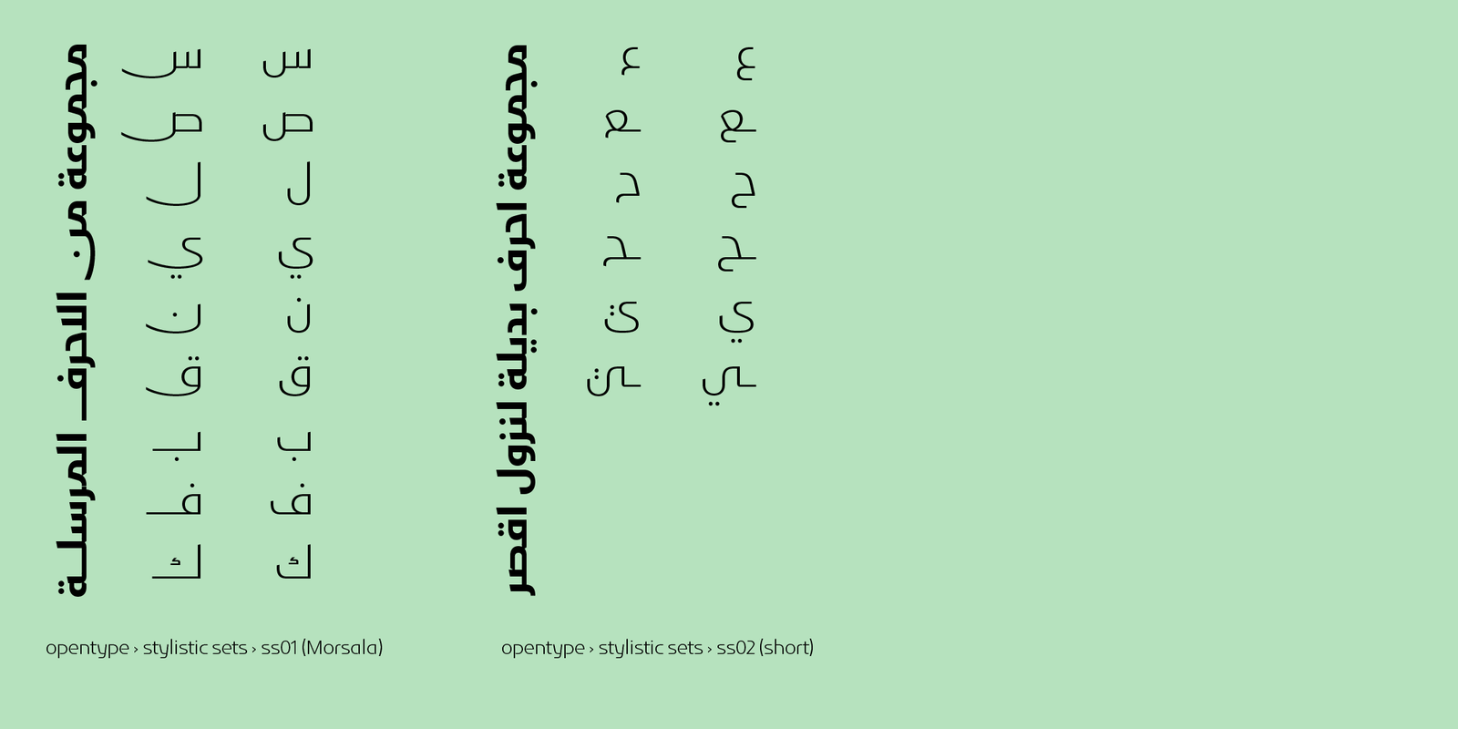 مناسب للعلامات التجارية، والتحرير، والتغليف، والإعلانات. يتميز خط مرسال بخمسة أوزان تتراوح من الخفيف إلى الأسود.