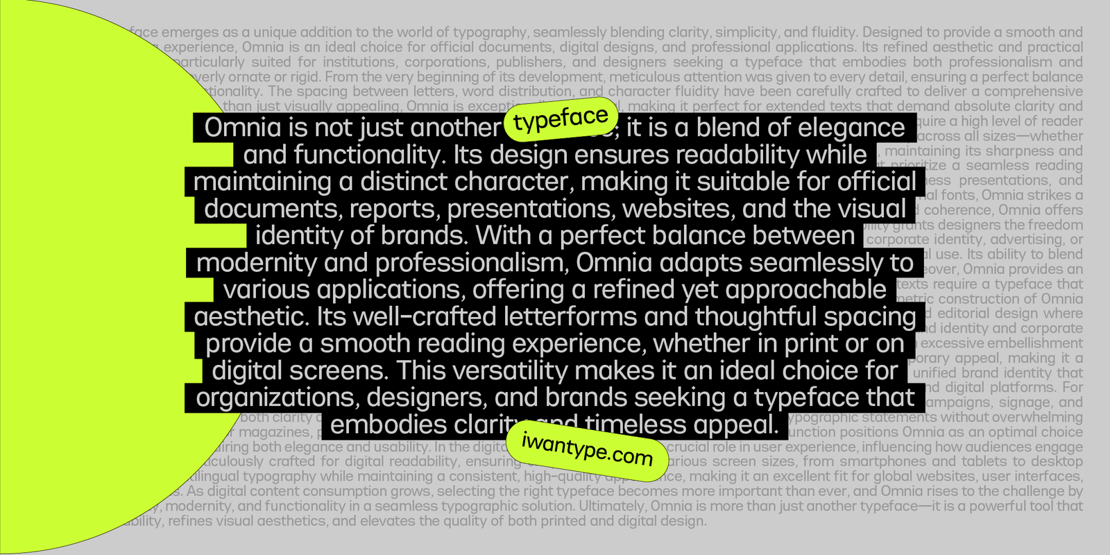 يتوفر أمنية أرابيك في خمسة أوزان مصممة بدقة، مما يوفر تنوعًا ومرونة للتكيف مع أي سياق تصميمي. سواء كنت تبحث عن لمسة رقيقة في الوزن الخفيف أو بيان جريء في الوزن الثقيل، يضمن أومنيا أرابيك أن كل تمثيل بصري يحافظ على سحره ورقيه.