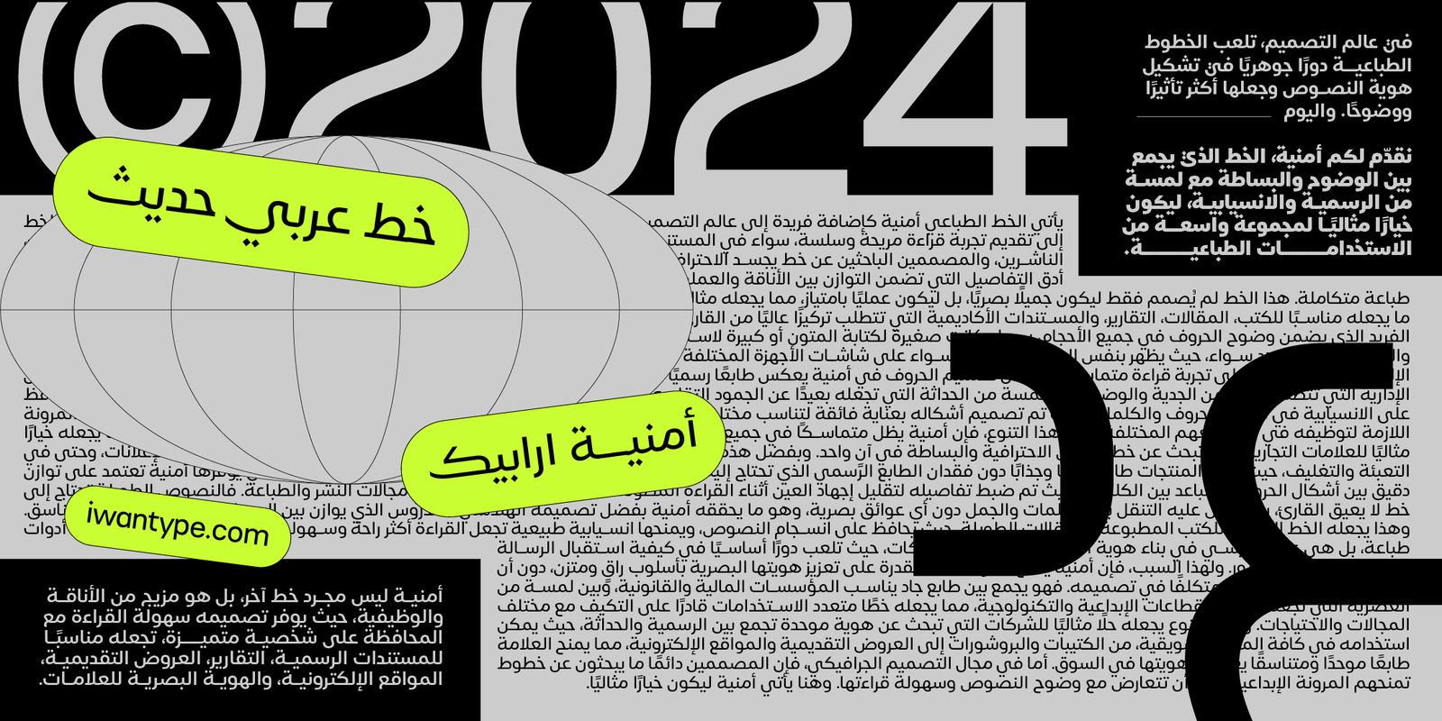 أمنية أرابيك هو خط عربي يجسد جوهر الأناقة والانسيابية. وهو مزيج متناغم من المنحنيات الرشيقة والجماليات الرائعة، تم تصميمه ليأسر ويلهم.