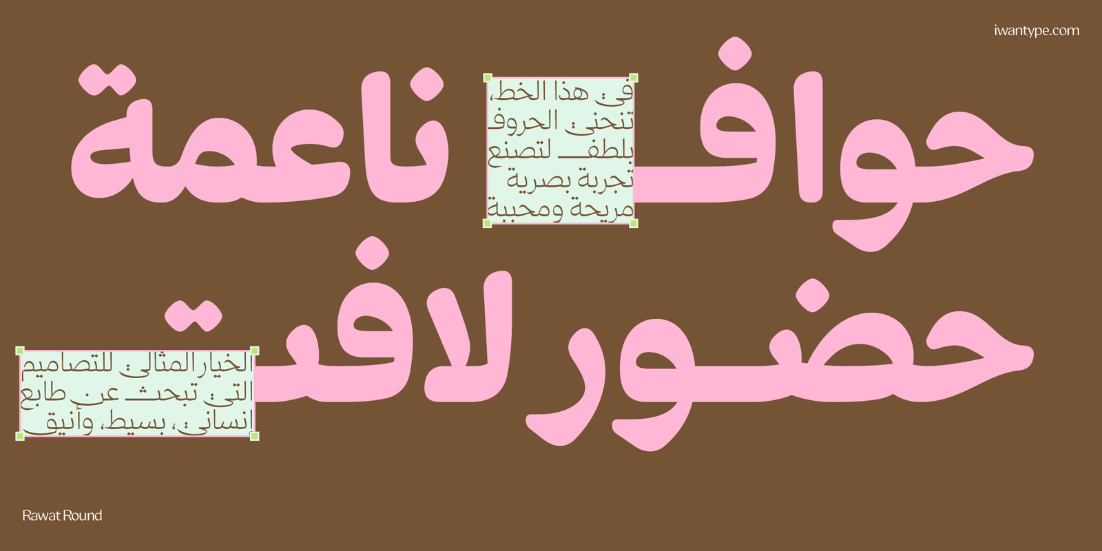 رايات راوند هو امتداد جديد لعائلة خط رايات، يتميّز بنهايات دائرية ناعمة تضيف طابعًا إنسانيًا ودودًا إلى البنية الهندسية الصارمة للخط الأصلي.