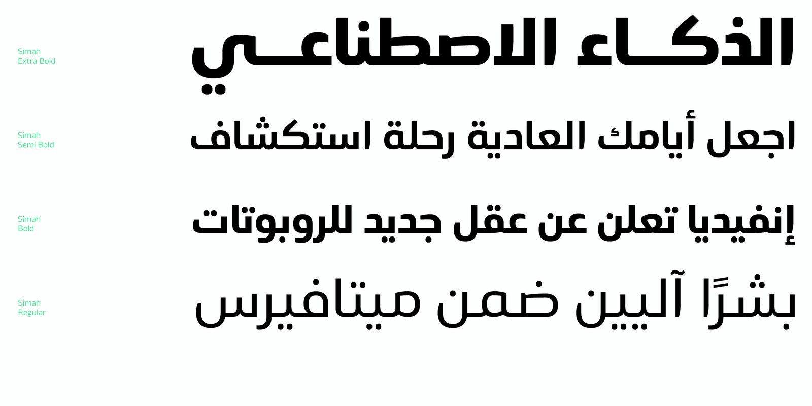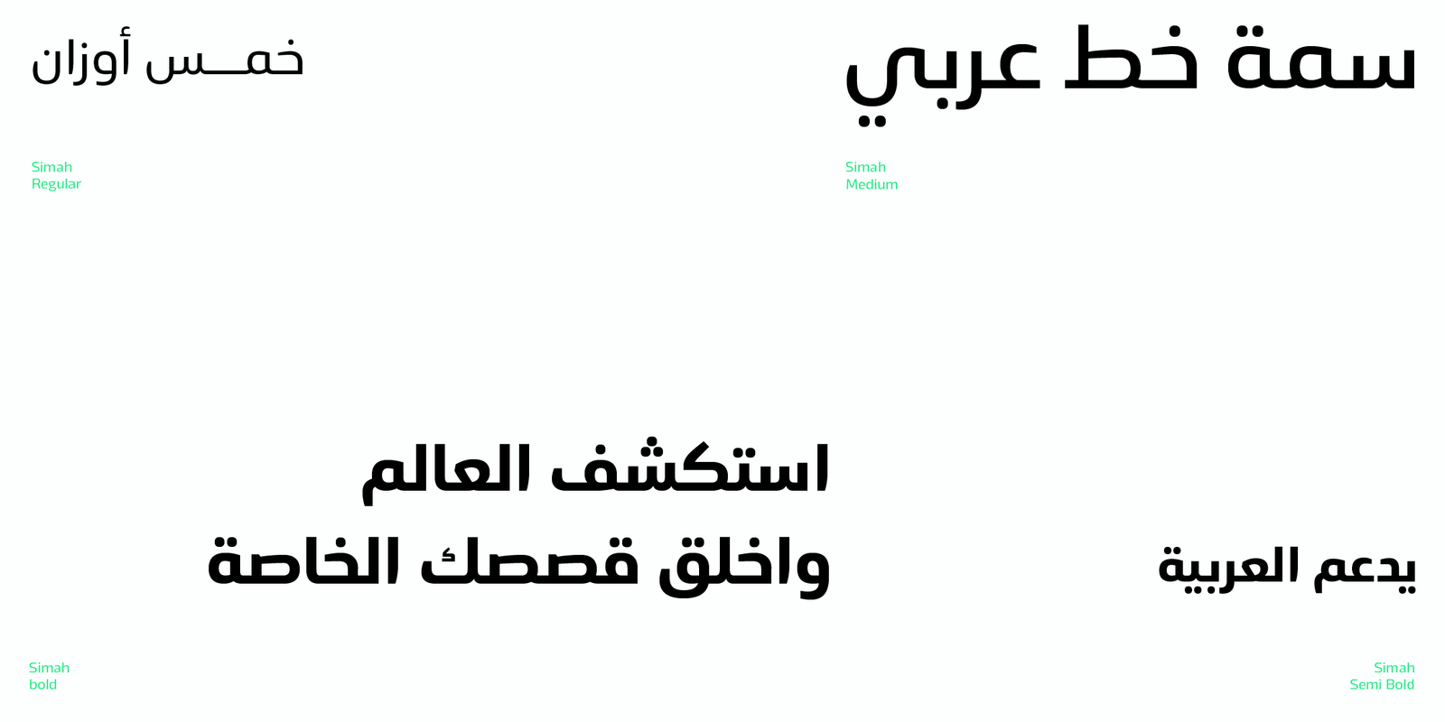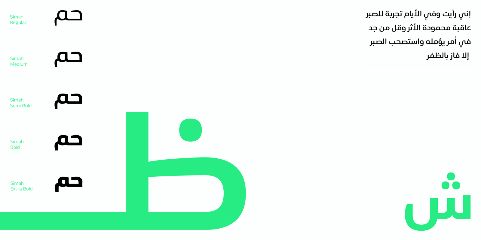 Simah is highly crafted in order to perform well both on screen and in print. it functions well even on small font sizes. It has a wide range of use possibilities headlines, logotypes, branding, books, magazines, motion graphics, and use on the web and Tv.