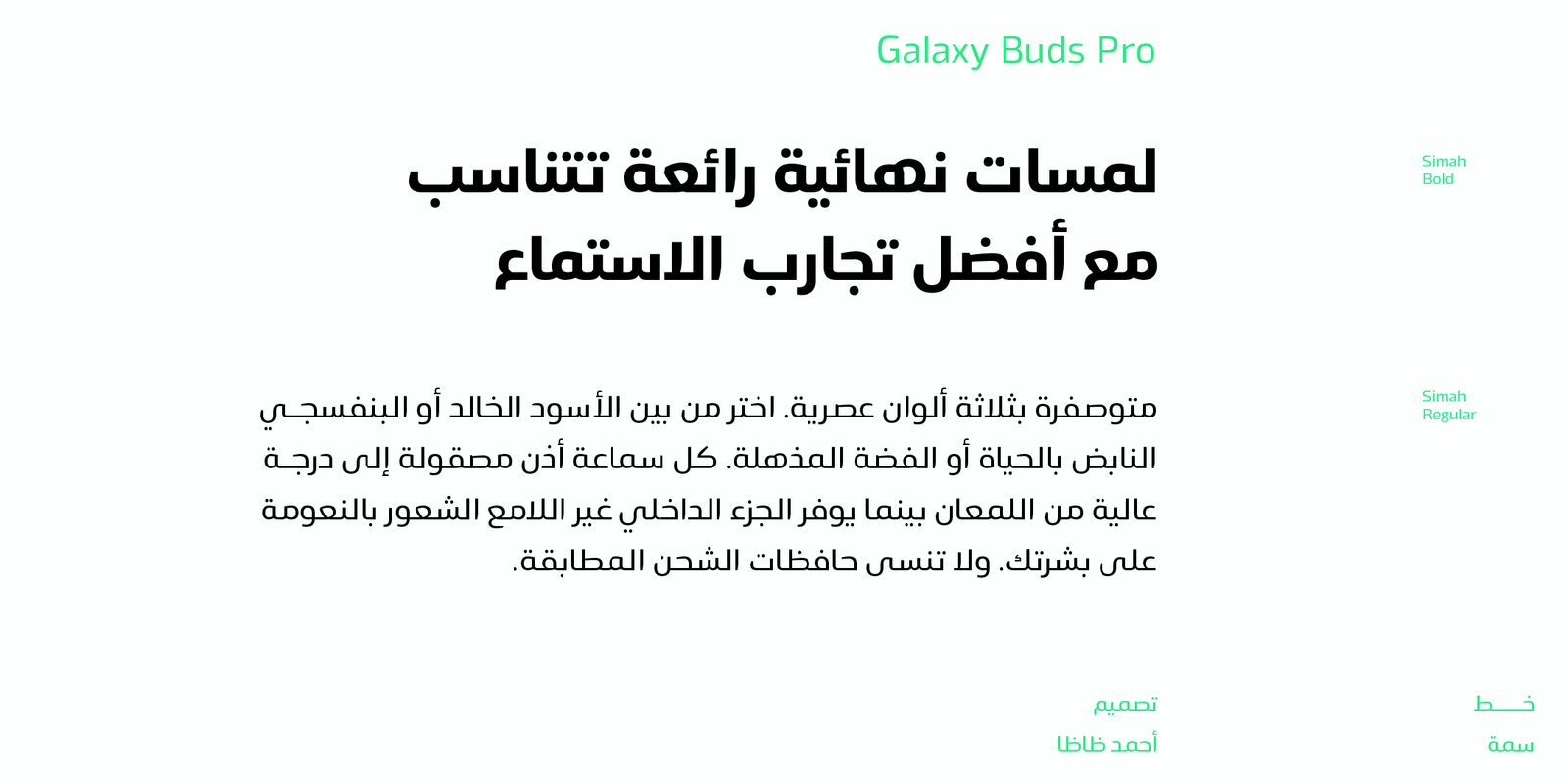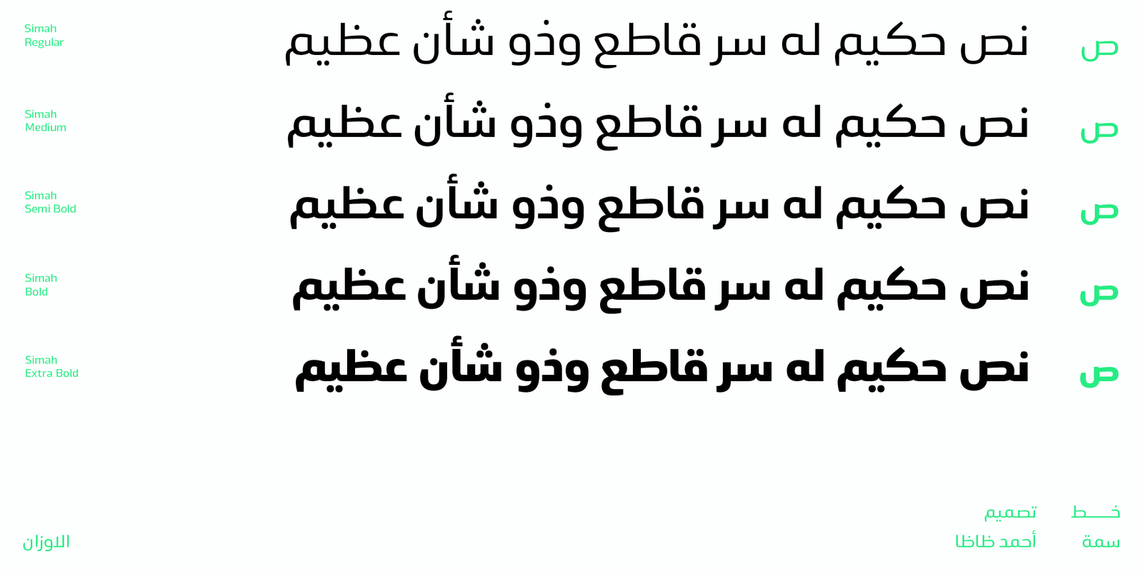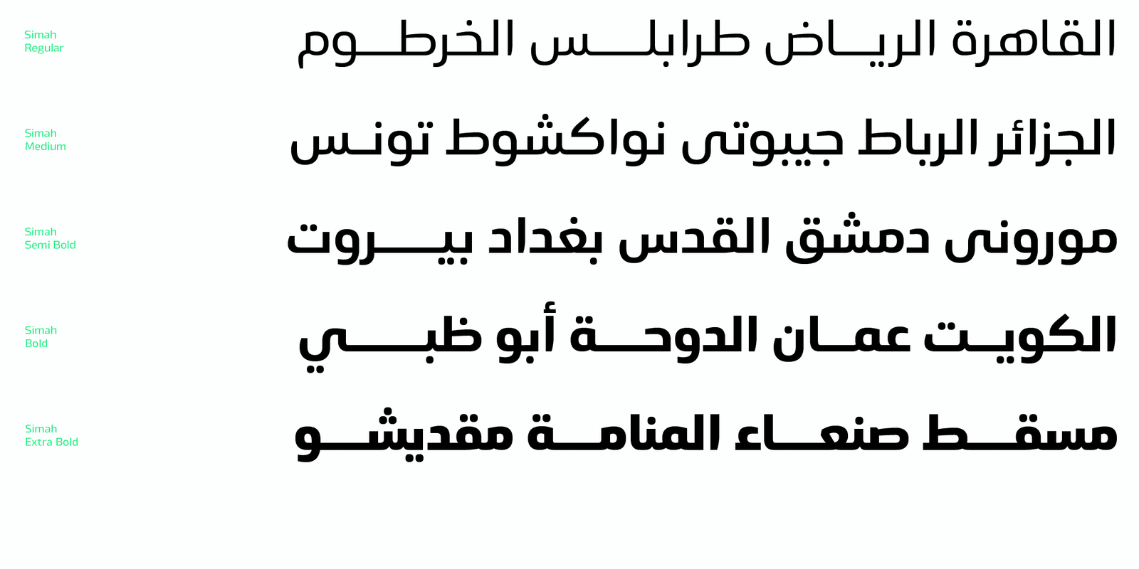 Simah is highly crafted in order to perform well both on screen and in print. it functions well even on small font sizes. It has a wide range of use possibilities headlines, logotypes, branding, books, magazines, motion graphics, and use on the web and Tv.
