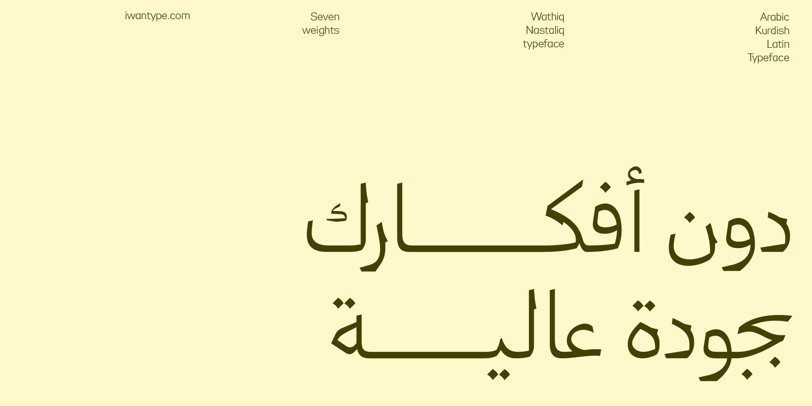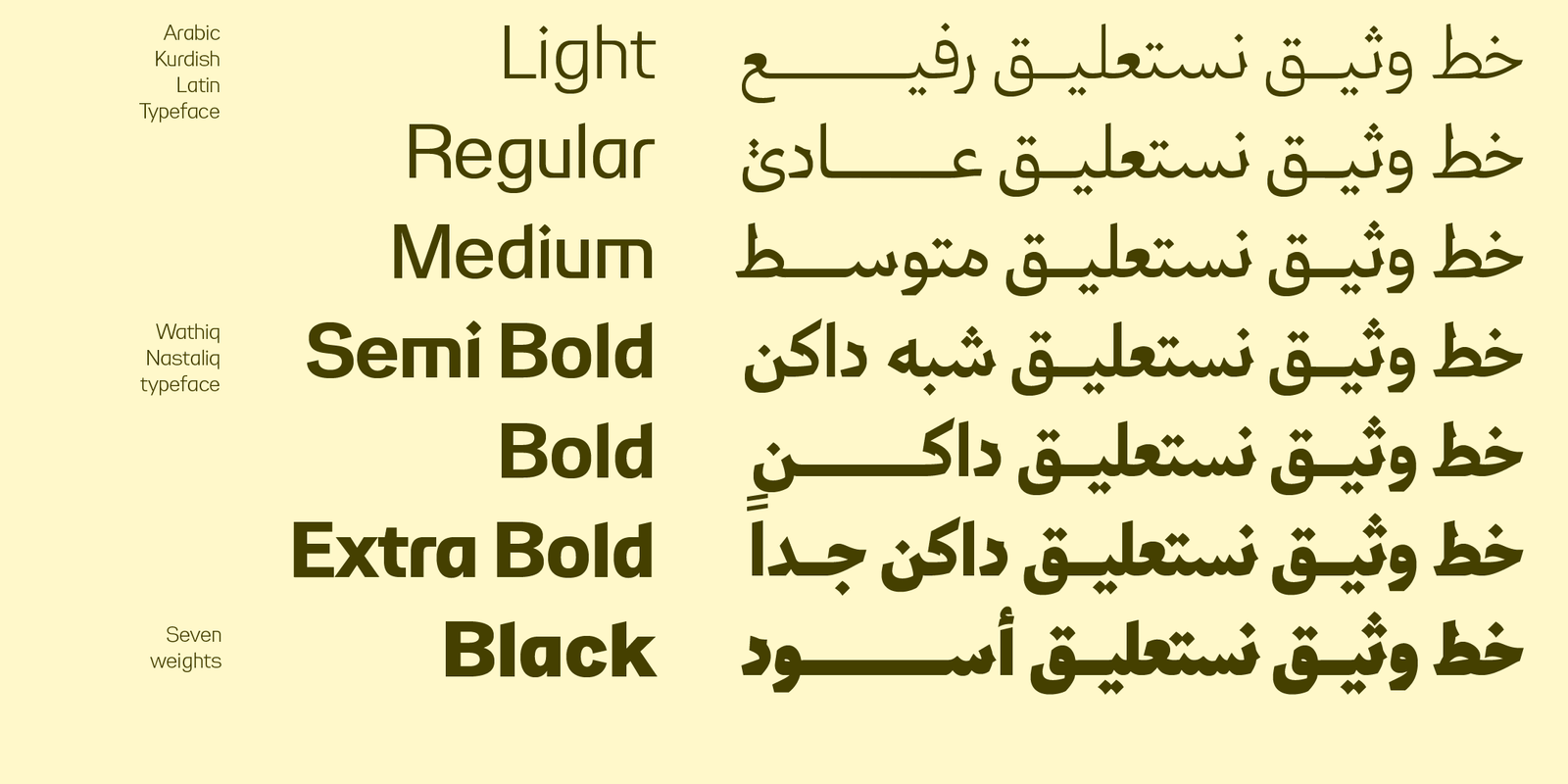 خط وثيق نستعليق هو امتداد معاصر لعائلة وثيق، يجمع بين وضوح الخط النسخي ورشاقة النستعليق في صياغة بصرية هادئة ومتزنة. يقدم الخط حلولًا طباعية للمشاريع التي تبحث عن حضور هادئ بعيدًا عن الفخامة المفرطة، مع الحفاظ على قوة التعبير البصري.